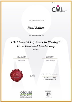 CMI Level 8 Strategic Direction and Leadership (Doctorate in Management)