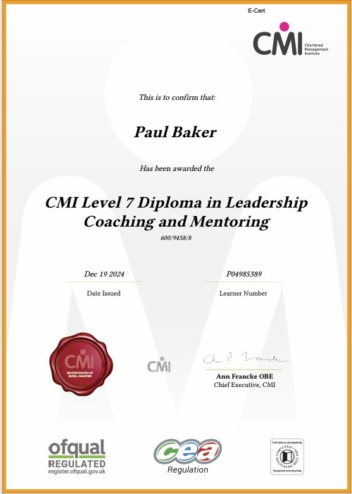 My CMI Level 7 qualification in Leadership Coaching and Mentoring (Master’s level) is a postgraduate programme designed for senior leaders who are responsible for developing and embedding coaching and mentoring across an organisation. It goes far beyond basic coaching skills and focuses on the strategic impact of coaching, mentoring policies, organisational culture and leadership capability at scale.